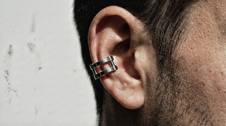 These units operate as auricular modulation devices that intervene in the perception of the facial plane. They are not conceived as decorative additions, but as sculptural forms establishing a relationship of tension with the wearer’s anatomy. Each piece constitutes an exercise in architectural precision, designed to frame the face through the control of light, shadow, and kinetic movement.