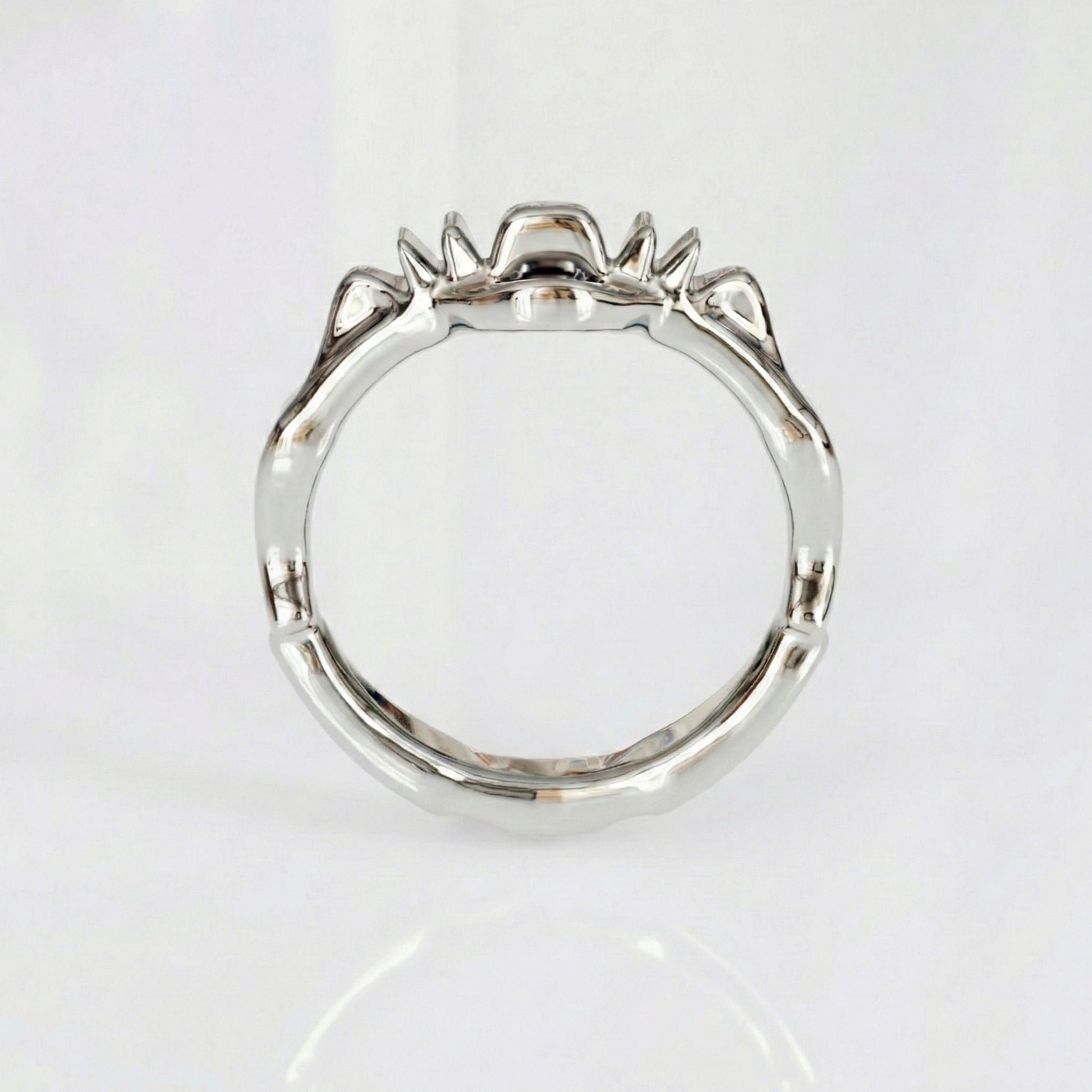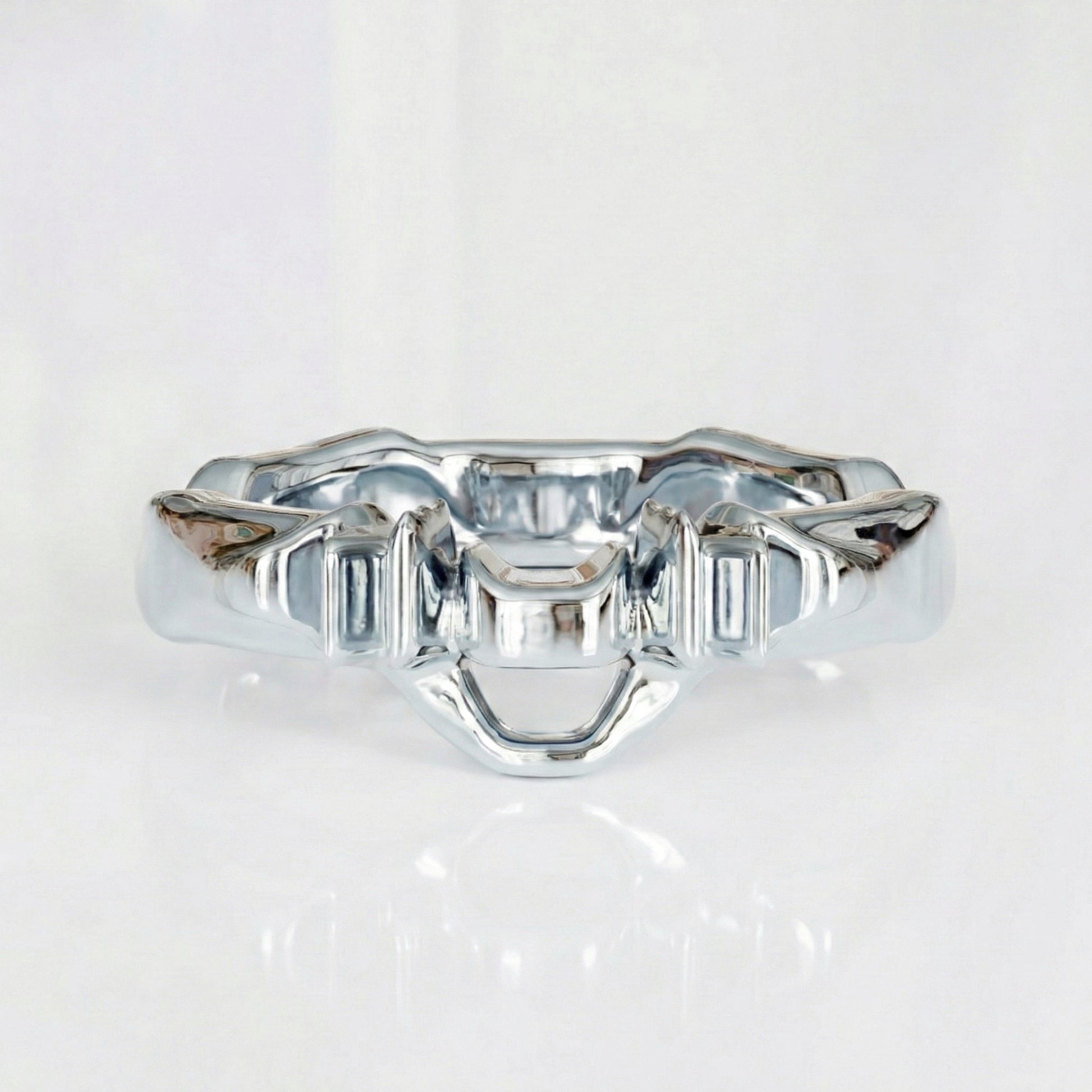 The (A) Symmetry No. 9 Ring functions as a condensed structural study of the larger (A) Symmetry system. It isolates the conflict between brutalist architecture and organic decay, scaling it down to the circumference of the finger.